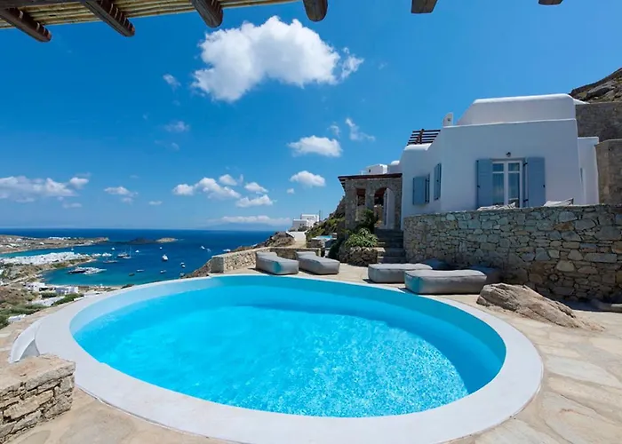 Villa Ammonite With Heated Pool By Diles Villas dysponuje słonecznym tarasem z widokiem na morze, 10 min jazdy od lotniska Mykonos. Willa oferuje sezonowy basen zewnętrzny, a także windsurfing, nurkowanie i jazdę konną dla aktywnych Gości.